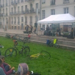 La vélorution festive et revendicative du tour a sillonné les rues de l’agglomération. Les valeureux sportifs-activistes du tour qui pédalent maintenant depuis presque 5000 km ont ensuite été accueillis en musique sur les pelouses du quai de Turenne à Nantes.