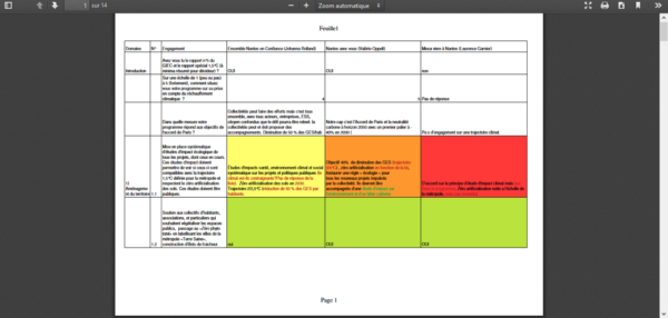 Des efforts majeurs restent à réaliser en ce qui concerne notamment la limitation du trafic aérien, de la voiture individuelle et de l’artificialisation des sols. Enfin les engagements manquent de précision : beaucoup de projets à l’étude, pas de calendrier de mise en place, budget flou.