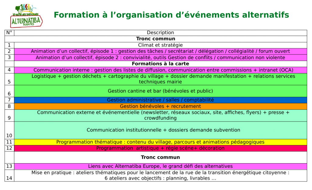 Nous avons réuni une équipe de formateurs qui a participé à l’organisation des villages des alternatives nantais et à d’autres actions d’Alternatiba, et ont concocté un programme très complet à découvrir ci-dessous.