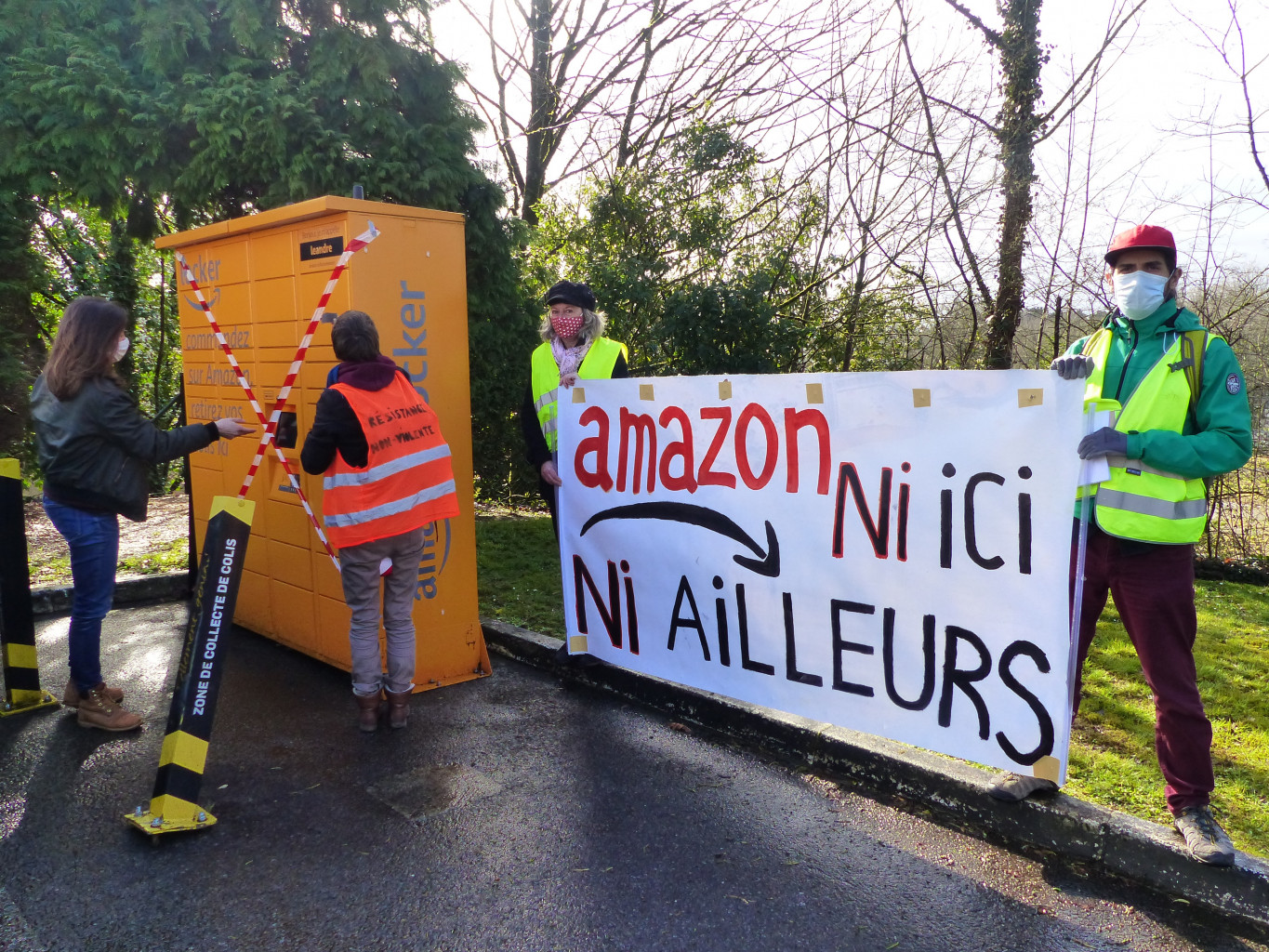 Tractage auprès des passant·es, banderoles déployées et photos envoyées sur les réseaux sociaux, les militant·es entendent dénoncer régulièrement ce qu’ils nomment l’“Amazonisation”: ” un système emblématique de fraude fiscale, de surproduction, de surconsommation, d’exploitation des employé·es au mépris de leurs droits et de leur santé“, explique Yves, indigné, qui ajoute : “comment ne pas le dénoncer alors que la gestion de la pandémie détruit la vie locale et favorise les profits d’une entreprise aussi écocide ?”