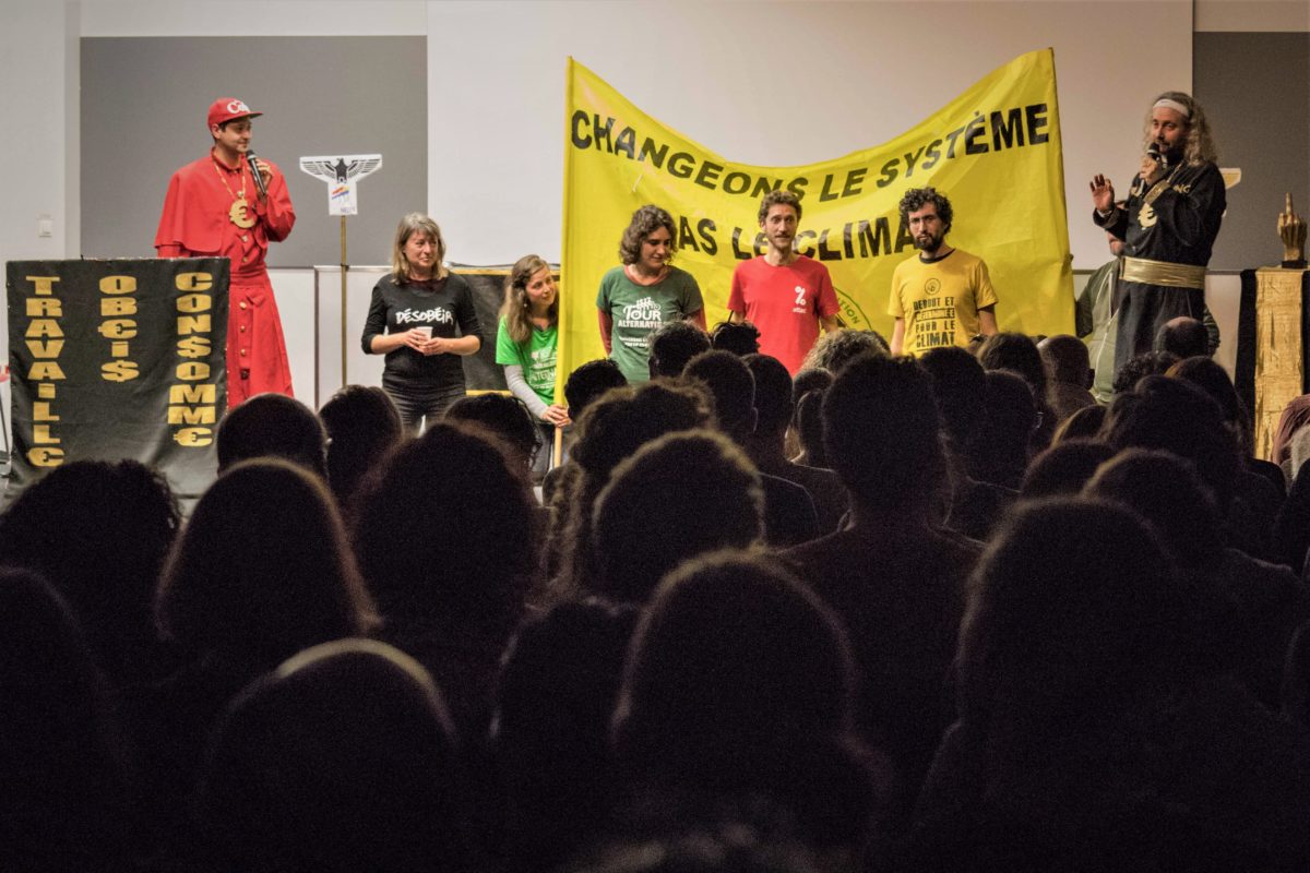 Quel succès pour l’Église de la Très Sainte Consommationà l’occasion de la6e Cérémonie des Doigts d’Or – Les Oscars du Capitalisme Nantesqui s’est tenue à la Manufacture des tabacs mercredi 13 février. ➡️Le Pap’40 et le Cardinal Triple A ont réussi à remplir une salle entière de fidèles dévoué.e.s aux préceptes de la Consommation sans limite et de la Croissance effrénée…🛐 ➡️ Même un groupe de militant.e.s d’Alternatiba Nantes, d’Attac 44et du GIGNVa fini par être decillé, exorcisé afin de se convertir à la religion consumériste.